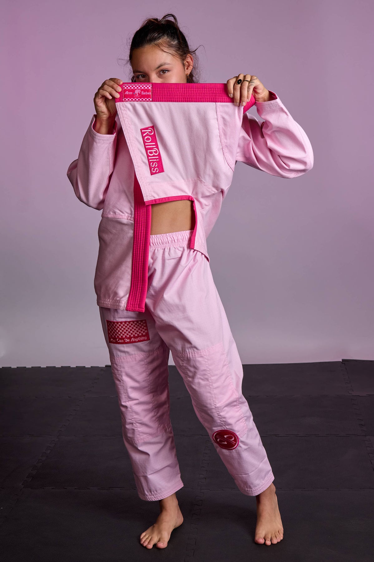 Step onto the mats in confidence with the Pretty in Pink Collection a bold fusion of elegance, strength, and grappler-ready performance. Crafted from premium pearl weave cotton, this gi is lightweight, durable, and built for the athletes who embrace their feminine side without compromising their fight.This collection isn’t about color it’s about identity. Strength can look beautiful. Pressure can look elegant.