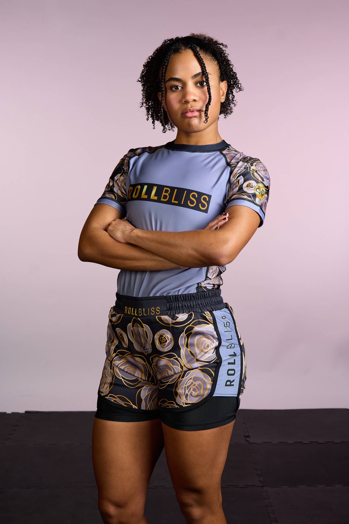 Grey Gold Roses Grappling Shorts Psalms Collection